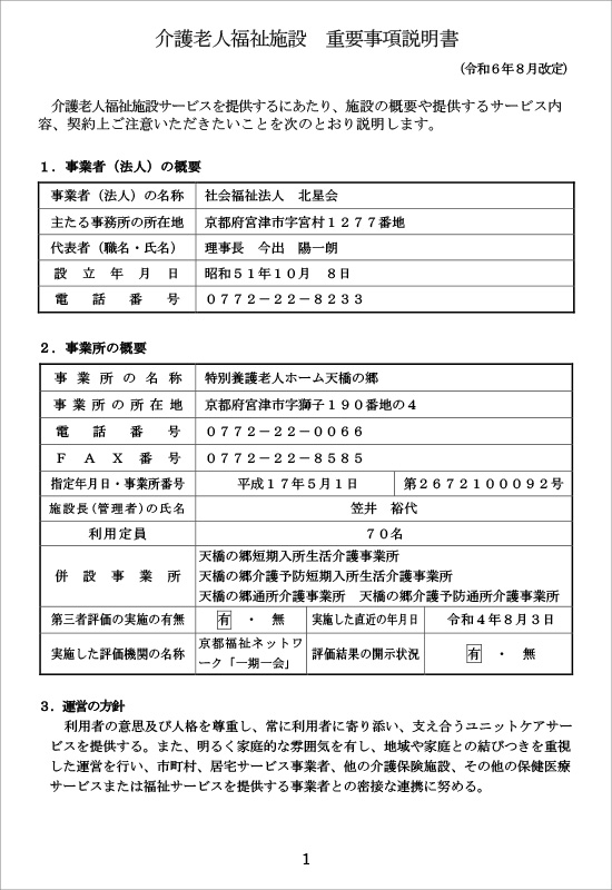 天橋の郷短期入所生活介護事業及び天橋の郷介護予防短期入所生活介護事業
