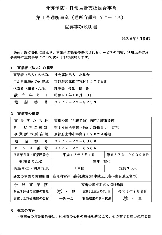 施設・事業 天橋の郷 通所介護事業 及び 天橋の郷介護予防通所介護事業